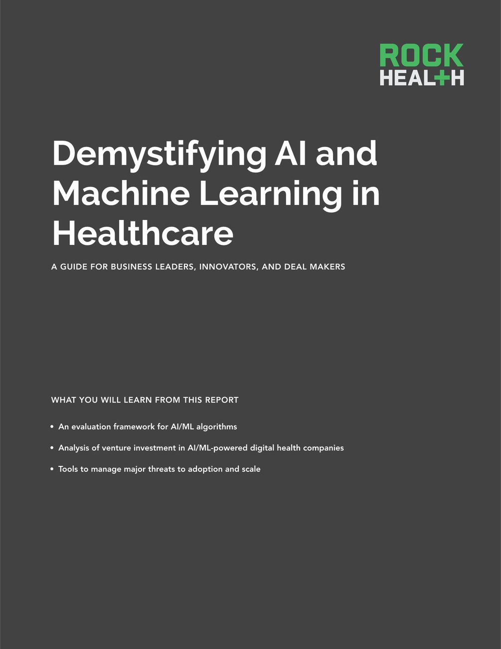 LICENSE AGREEMENT THIS LICENSE AGREEMENT (the “Agreement”) is entered into by and between you and Rock Health, Inc. (“Rock Health”). By clicking ‘Buy this’, you hereby accept the term and conditions hereunder and create a legally binding document between you and Rock Health regarding your purchase of Demystifying AI and Machine Learning in Healthcare (the “Report”).